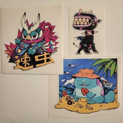 I have more stickers than I have places to put stickers. Here's a list of some of the stickers I have, with credits to the artist or places to purchase them: